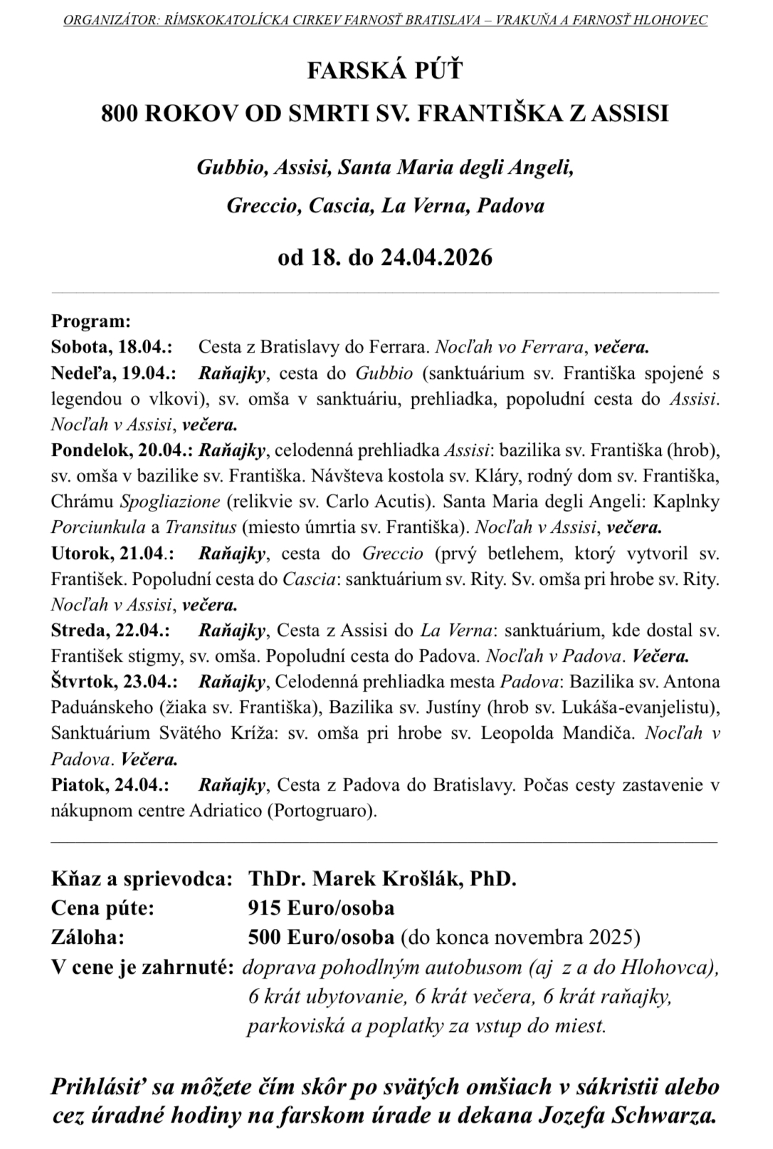Aj tento rok je možnosť formou 2% z Vašich daní prispieť na účet nášho občianskeho združenia Svätý Michal, ktoré bolo zriadené za účelom rekonštrukcie farského kostola, kaplnky sv. Anny a kostola Ducha Svätého. Potrebné tlačivo nájdete v elektronickej podobe na