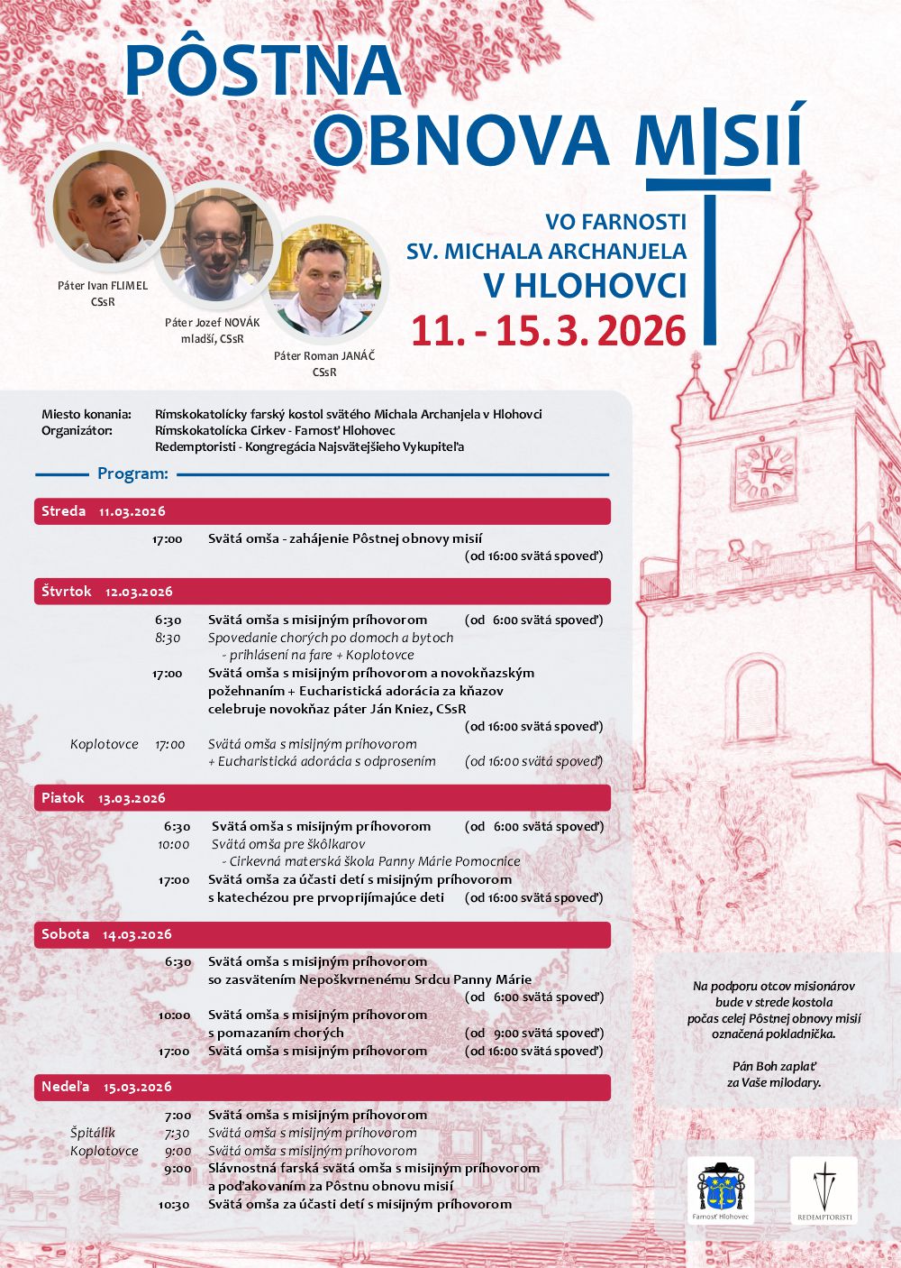 V prvopiatkovom týždni spovedáme vo štvrtok a piatok už od 15:30